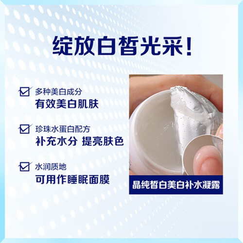 美白保湿一步到位的平价面霜,它科学配比水解珍珠、人参、光果甘草及莲花等成分,可轻松打开肌肤吸收通道,加乘补水美白效果!
