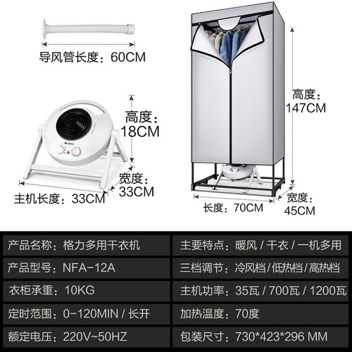 自带导风管实现一机多用,烘干衣服卸妆、温暖被窝、升温取暖样样精通。一体式连接配件有效提高整个的支撑力,牢固稳定不变形。