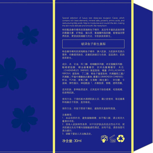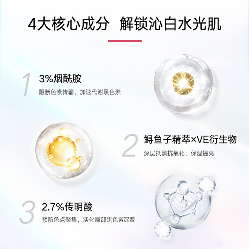 鱼子炫白新生精华液,渗入肌肤,为肌肤补充美白营养,并且能均匀提亮肤色,改善肌肤暗沉与色斑,让你的肌肤重现年轻的光彩。