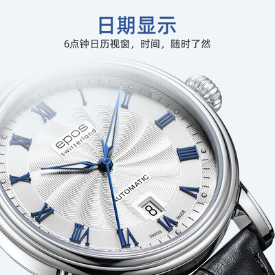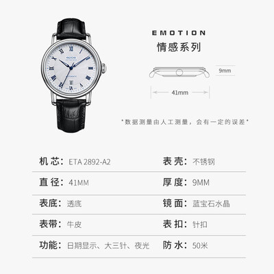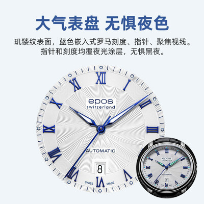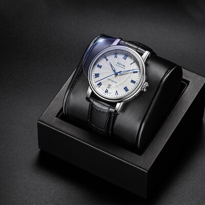 经典烤蓝钢针盘面,搭配罗马数字刻度,直观清晰。辅以夜光涂层工艺,支持暗光读时,随时掌握时间。