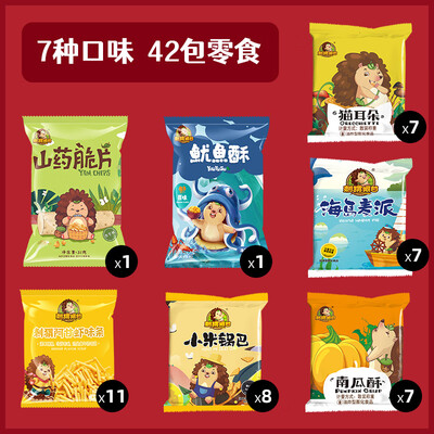 42包休闲零食大聚会,惊喜组合,满足你的挑剔口味。礼盒内部含有不同品种的零食,香酥脆软,咸甜兼备,口味多样,撩动舌尖。