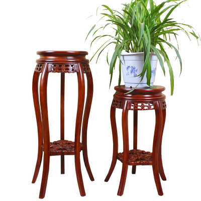 此款花架选用榆木材质,木质坚韧,具有良好的耐腐蚀性;采用传统木雕工艺,搭配栗色实木纹理,更显古典之美。