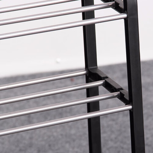 此款鞋架小巧简易,不占空间,美观大方,满足不同家居装修风格。横杠的缺口里设有加固条,防止圆管掉落或者松动,结实稳固。