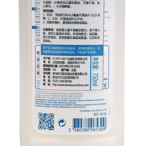 欧盟认证的有机衣物护理剂,全天然植物成分,不含有害化学成分,零敏感多效合一护肤更柔顺。水蜜桃香型更好闻。