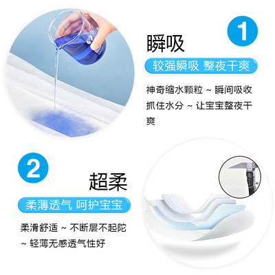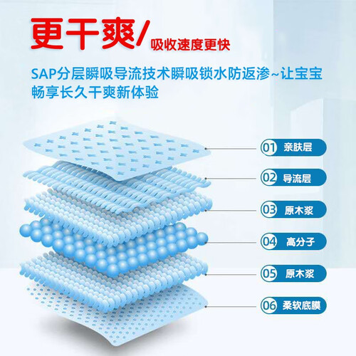 纳米级透气孔设计,为宝宝提供干爽舒适的优良体验,确保空气清新。结合瞬吸导流技术,告别反渗的烦恼,几乎不留痕。