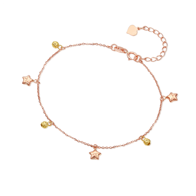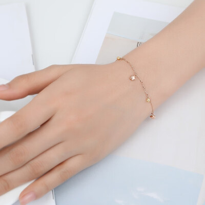亮眼的玫瑰金材质打造而成,色彩柔和,纤细的链条上点缀着星星铃铛元素,佩戴在手腕上能凸显出女性优雅独特的气质。