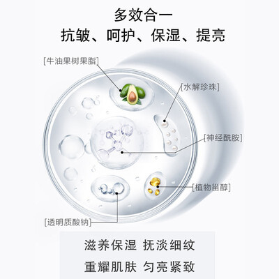 甄选草本保湿精华,深层渗透肌底,沁养润泽肌肤,令肌肤焕现透亮光彩。添加水解珍珠成分,有效提亮肤色,带来水嫩美肌。