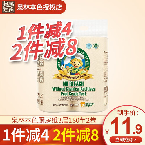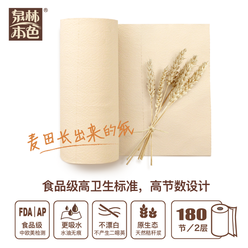 采用天然秸秆制作,不添加漂白剂,可无害自然降解,低碳环保更健康;同时水滴型导流压纹,吸水吸油更快,让全家放心使用。