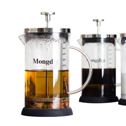 带有刻度标记,方便控制用量,帮助您冲出美味饮品;采用新月型把手设计,玻璃材质表面光滑,拿握舒适方便。