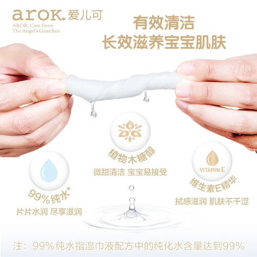 选用水刺无纺布,经多重纯水过滤净化,确保其含有99%以上纯水含量,添加草本植物,使其贴合宝宝娇嫩肌肤,抑菌更温和。