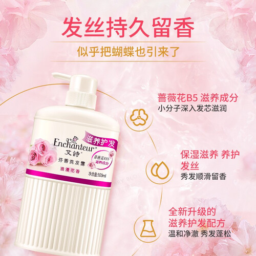 萃取玫瑰精华,深层滋养发梢,及时补充头皮所需成分。融合纯净茉莉的香水洗发香型,令发丝散发迷人魅力。