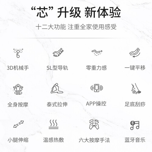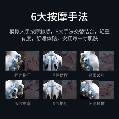 按摩椅启动后即可自动向前平移,灵活不占地。长导轨按摩行程长,让脊椎更能自然舒展。