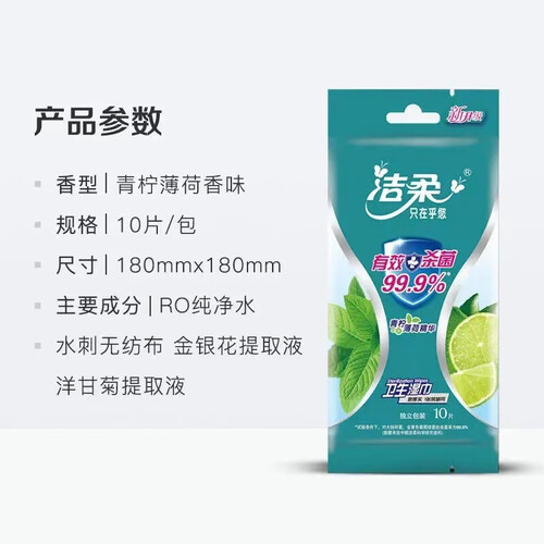 洁柔薄荷柠檬香抗菌卫生湿巾