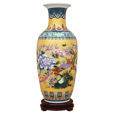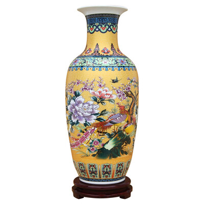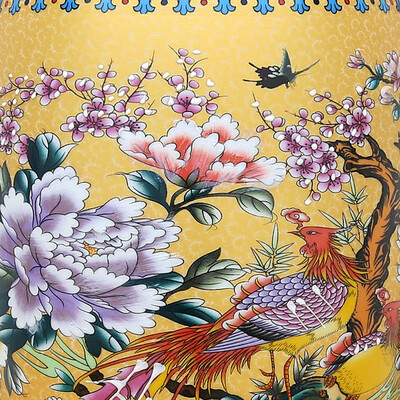 手绘鎏金春晖图印染其上,展现出新中式的风格,让客厅充满生机。加厚的瓶身,使其十分稳固,不易自行移动摔倒。