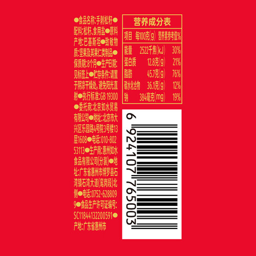 源自巴基斯坦,产地好果仁更优质;只经过轻加工,大大保留了松子自然的味道,松子松香味十足且酥脆可口,吃起来口感超棒!