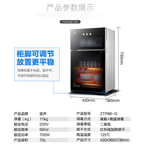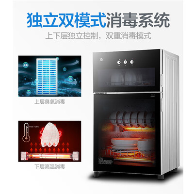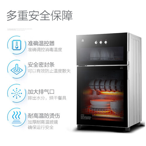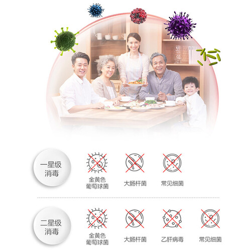 下层搭载125℃远红外消毒技术,高热力有效消灭细菌,保障碗筷的干净,加厚不锈钢内腔,可以多角度折射,全方面消灭细菌。
