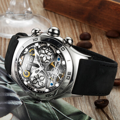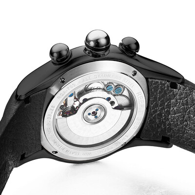 黑色基调设计,与镂空盘面相互结合,展现出大气复古的魅力风格,50米生活防水,无惧雨淋,洗手和沐浴不用摘。