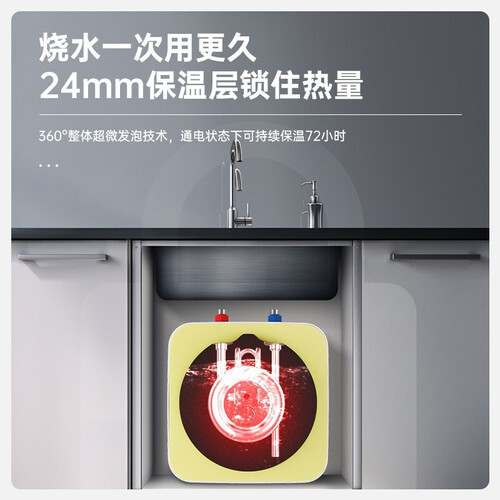 采用360°聚氨酯发泡技术,有效减少热量损失,断电后也能拥有温暖热水,持久保温。1500功率加热快,温水随用随有。