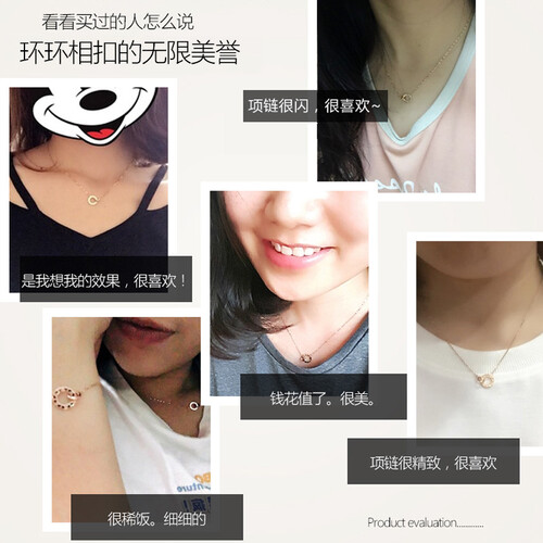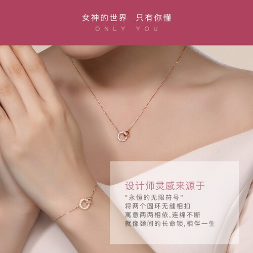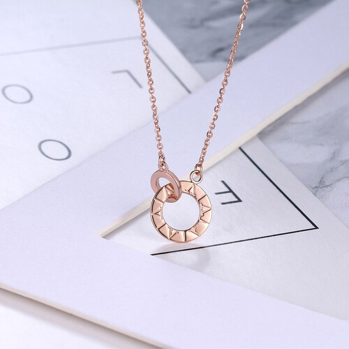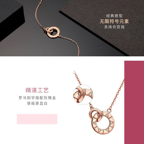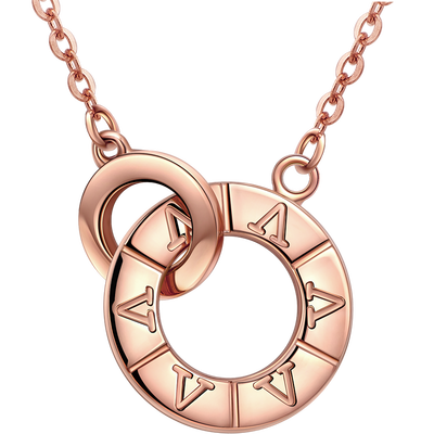 环环相扣仿若拥有浪漫的怀抱,玫瑰金的吊坠镌刻V字,将暧昧性感与知性同时展现。创意延长链可调整长短,设计感十足不单调。