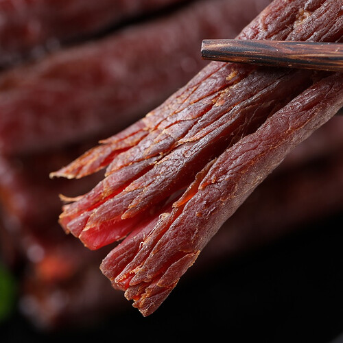 选取草原放养的新鲜牛后腿肉为原料,结合传统工艺自然风干、烘烤而成,牛肉干肉质紧实耐嚼,入口肉香醇厚,令人吃过后唇齿留香。