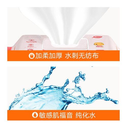 人性化翻盖设计的婴儿湿巾,既能减少内部水分蒸发,又可防止外部灰尘、细菌污染,可反复开启、粘合使用。