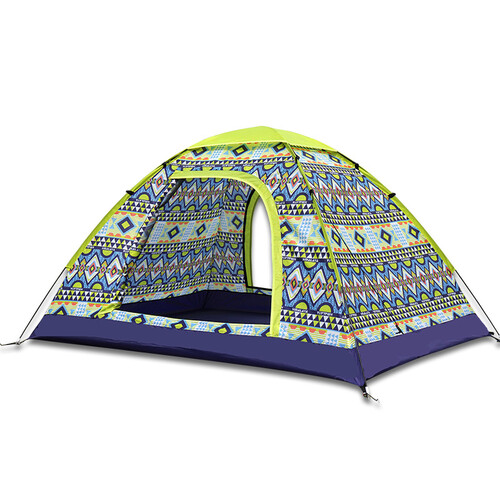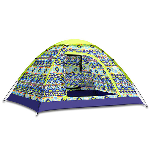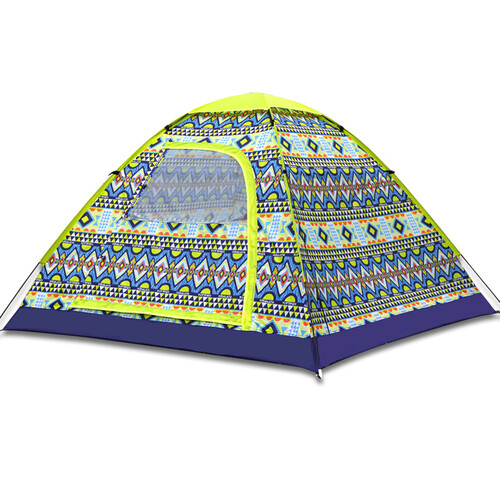 帐身采用独特的民族风印花设计,配色鲜艳明亮,吸睛抢眼;采用前后双门设计,可供两人同时进出,避免拥挤。