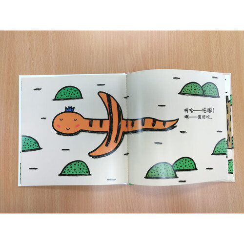 每天小蛇都能发现食物并把它吃掉,第六天,它发现了一棵苹果树,接着会发生什么呢。小蛇的贪吃的形象会激发儿童好奇心。