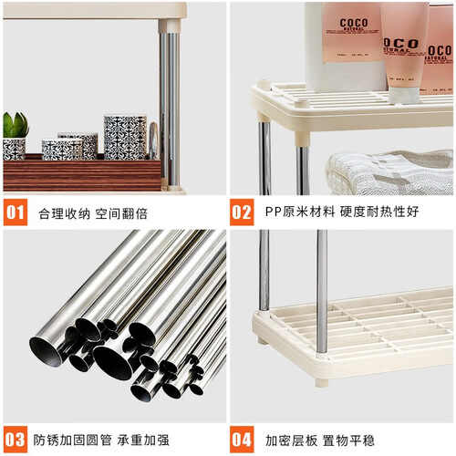 采用优质的PP原料做为层板,质地更加坚韧,日常使用不易断裂。甄选优质防锈圆钢管,坚韧牢固又稳定,日常使用不变形。