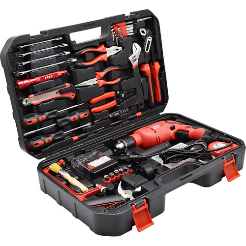 全能工具箱|全套工具采用优质的55高碳素结构钢制造,手柄使用TPR弹性手柄,手感舒适,表面经过镍合金处理,防锈效果更佳,128件套工具,装修问题轻松解决。