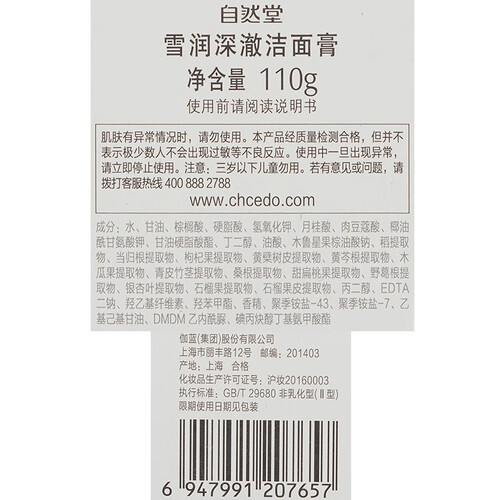 自然堂 洗颜滋润保湿清爽洁面