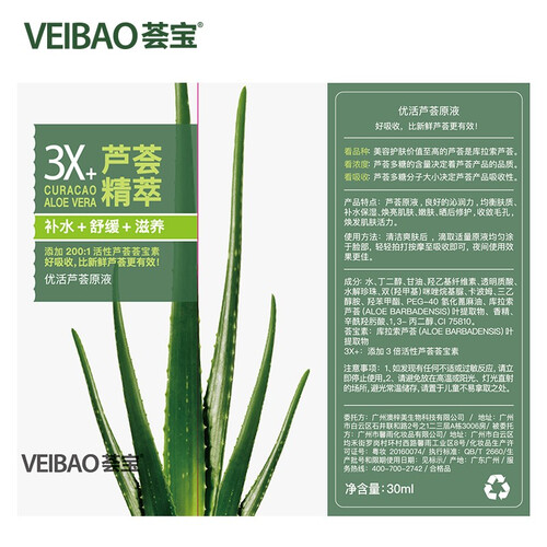 从天然芦荟中萃取的精华成分,质地非常的温和细腻,肌肤吸收快速。添加的保湿因子,补水保湿,平衡水油,更好的改善肌肤状况。