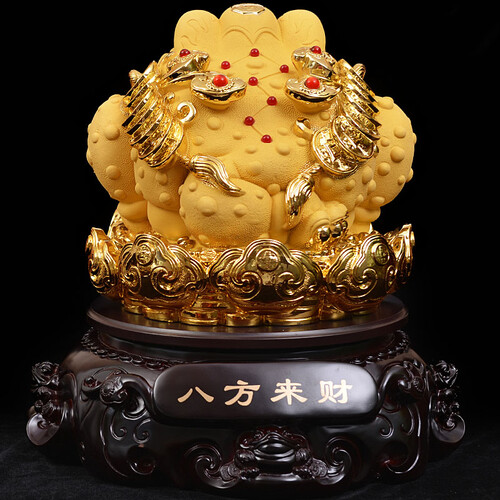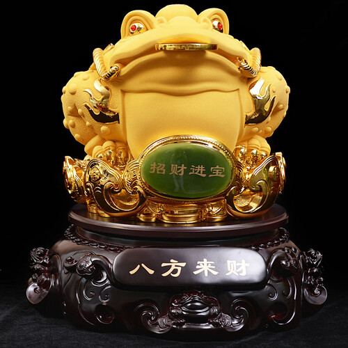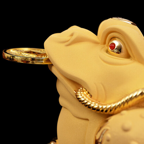 口吐金币的金蟾造型,寓意财源滚滚财福不断,适合送给做生意的朋友。蟾蜍在底座上可360度旋转,适合多方位观赏。
