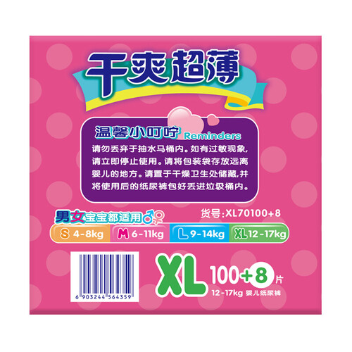采用轻薄吸收芯体设计,结合全新蝶形裁剪底膜,更加贴合宝宝身材曲线。高能锁水分子,快速吸收水量,避免反渗。