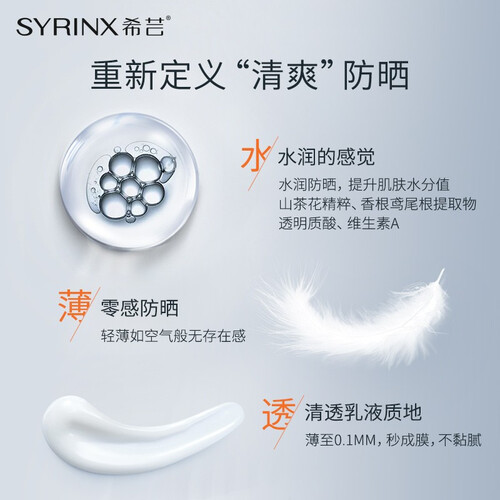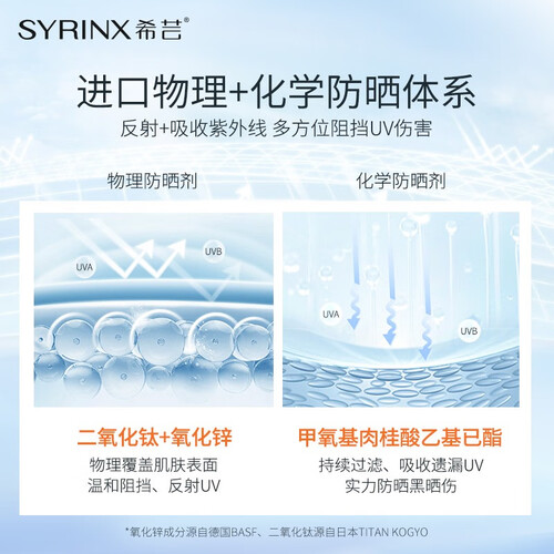 物理防晒加化学防晒,双重防晒,兼顾防护与护肤,减少紫外线对肌肤造成的伤害;水润清爽不厚重,易推开不假白。