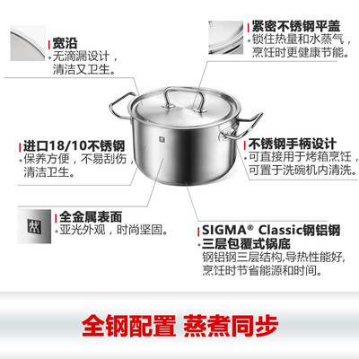 不锈钢材质打造的锅体,表面光滑,容易打理。表面经过抛光处理,呈现出缎面效果,更显时尚大气。