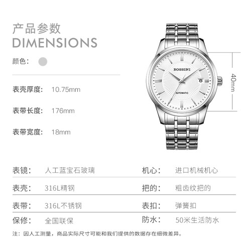罗西尼 钢带机械男士国表