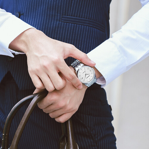 精钢实心带的设计,结实坚固,富有光泽,长久佩戴也不易变形断裂。传统大三针的设计,简洁美观,易于读时。