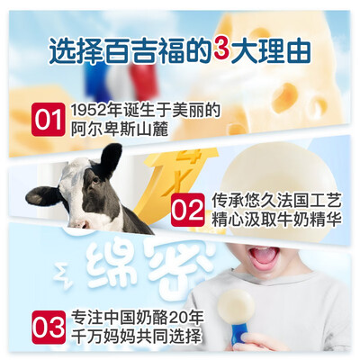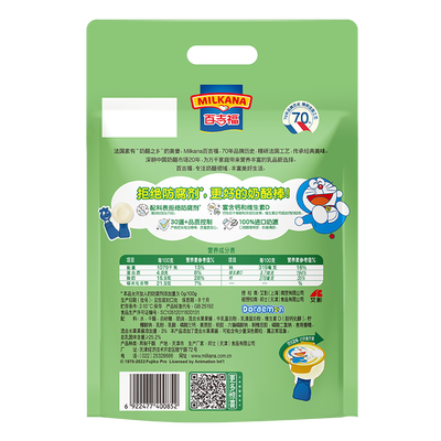 含有丰富钙质,可促进宝宝健康成长,让宝宝个子长得高高的。奶香细腻,分子小易于身体吸收,吃过之后满嘴香甜。