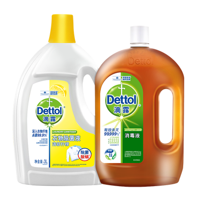 组合内包含多用途消毒液与衣物除细菌液,均能除细菌和螨虫,使用后还能散发淡淡的自然清香,用专业的配方守护家中的每个角落。