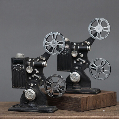 以放映机造型设计,别致典雅,营造复古历史岁月感。搭配优质树脂材质,结实牢固,让您的装饰摆件经久耐用。