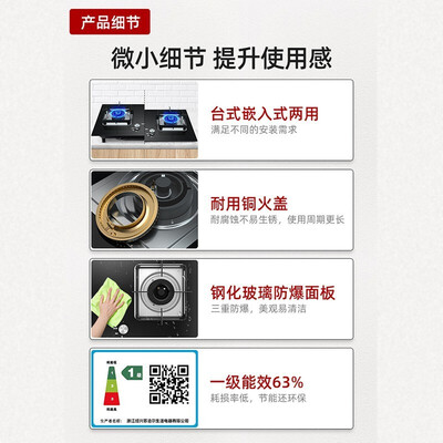 多方位立体进风,让燃气充分燃烧,火力旺盛均匀,快速炒制美味。黑晶防爆面板,美观大气易清洁,高品质更耐用。