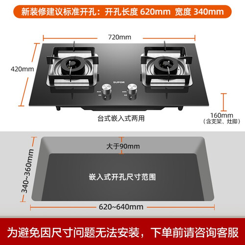 苏泊尔 双灶具台嵌两用燃气灶具