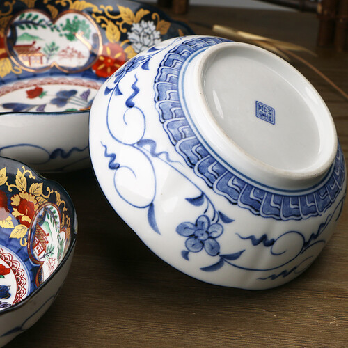 8.1英寸大碗,复刻日本江户时期伊万里烧经典款式,花面采用手工贴花,釉色浓重鲜美。