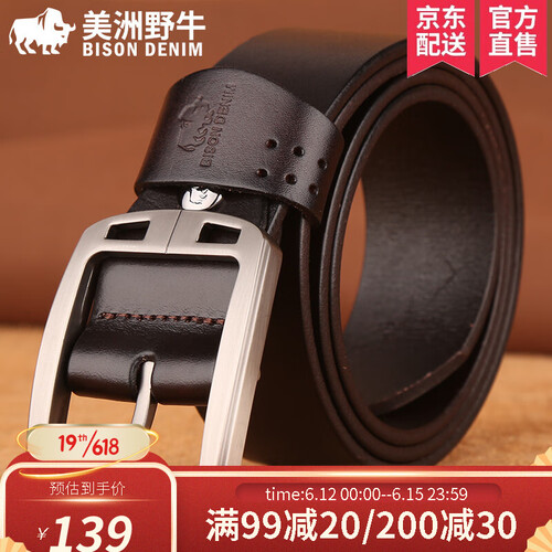 美洲野牛 深咖色复古皮带