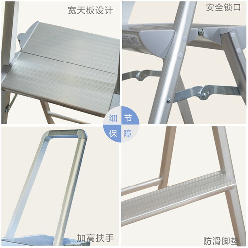 可承受100公斤的重量,满足正常家庭的使用需求,无需担心踩坏破损。配置安全锁扣,锁紧时成稳定的三角结构,家人可放心使用。