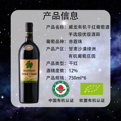 酒的层次丰富,前调果香味浓郁,慢慢地可以品出甘草和香料的香气。选用无化肥、农药的有机葡萄为原料,喝得更健康。