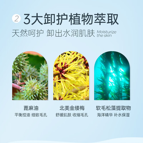 深海萃取配方,无需水洗即可卸妆,一抹即净,植物成分,温和清洁肌肤的同时也能养护肌肤,让皮肤受到温和的呵护。