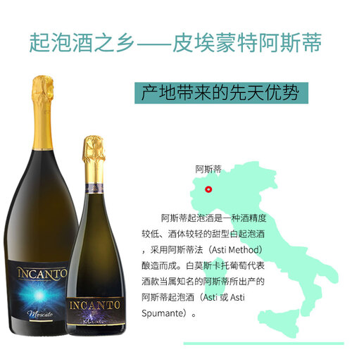 麝香葡萄为原材料酿造而成,带有独特的果味和花香味道。而且采用起泡专属设计,显得更加华美大方,品质突出。
