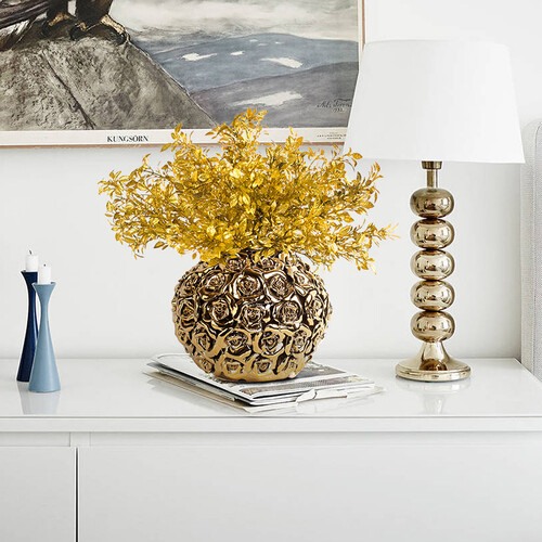 创意手工制作而成的花瓶,造型独特富有艺术美感,打造欧式现代风格。金属色泽张扬而厚重,沉稳有质感。