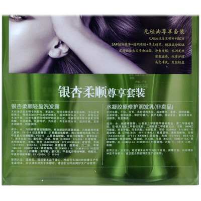 采用无硅油配方,温和去除头皮多余油脂,令头皮清新爽洁,有助头皮水油平衡;银杏精华,滋润发根,令秀发水润顺滑。